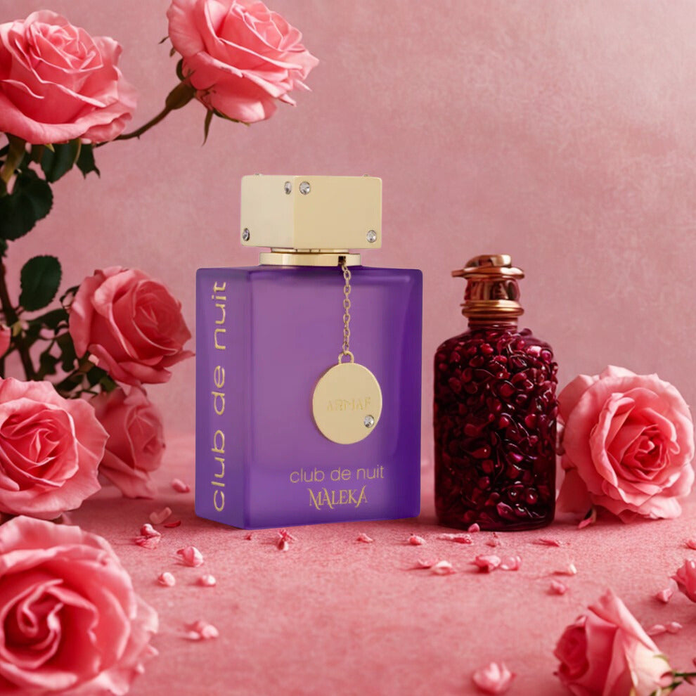 Club De Nuit Maleka by Armaf is a Floral Fruity fragrance for women. This is a new fragrance. Club De Nuit Maleka was launched in 2025. The nose behind this fragrance is Olivier Cresp. Top notes are Pink Pepper, Bergamot and Lychee; middle note is Orris; base notes are Sandalwood, Praline and Ambroxan.